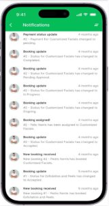 • Push Notifications for reminders, offers, and updates: In-app and push notifications keep users informed about upcoming services, promotional deals, and any changes to bookings.