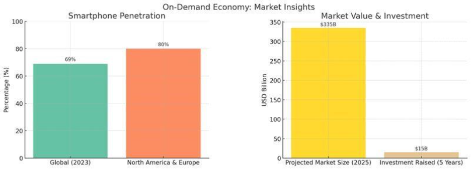 According to PwC, the global on‑demand economy (encompassing gig work and digital service platforms) is projected to reach USD 335 billion by 2025, driven by continued growth in mobile-first behaviors and digital payments.