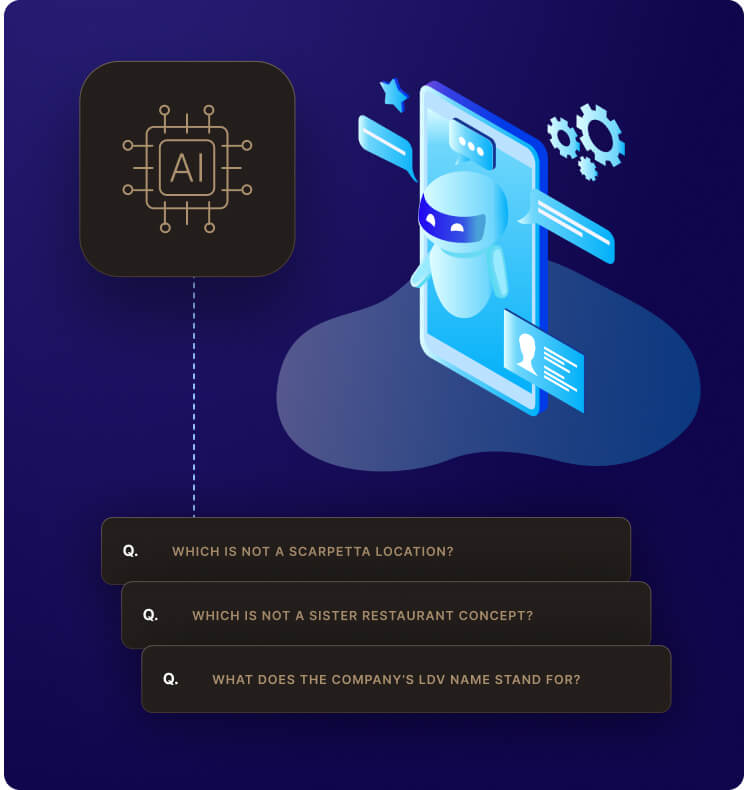 • Manual trivia question generation for hundreds of menu items was time-consuming and resource-intensive, diverting staff from other important tasks.